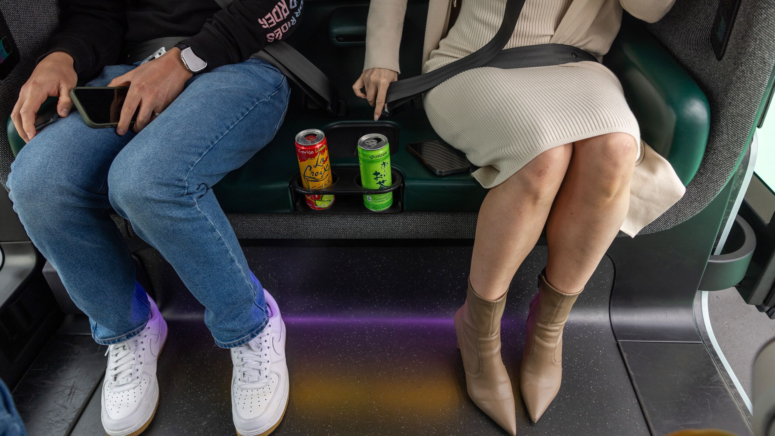 Once you’re inside, there are seat belts to buckle up, as well as cupholders to store your drinks.