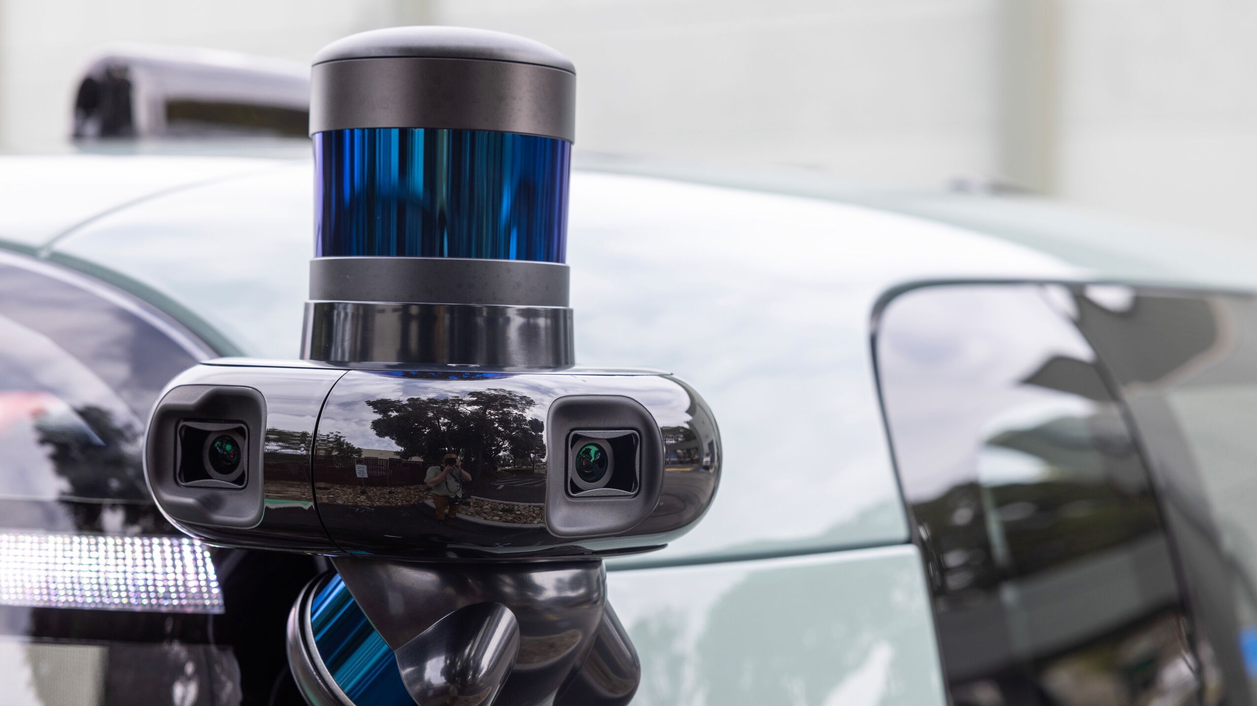 The sensors on the outside of the vehicle enable the AI driving system to expertly navigate the roads, and exterior lighting like turn signals and brake lights communicate with other drivers to make sure they know what the robotaxi will do next.