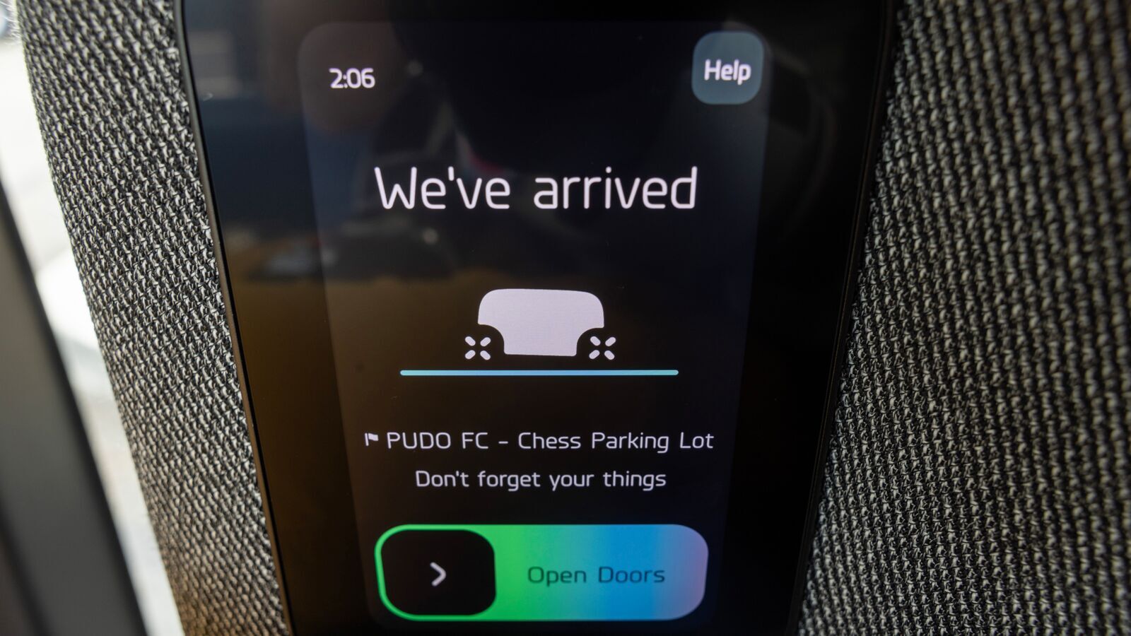 Our ride went by fast. Once we arrived at our destination, the vehicle parked in its designated spot and prompted us to use the screen to open the doors.