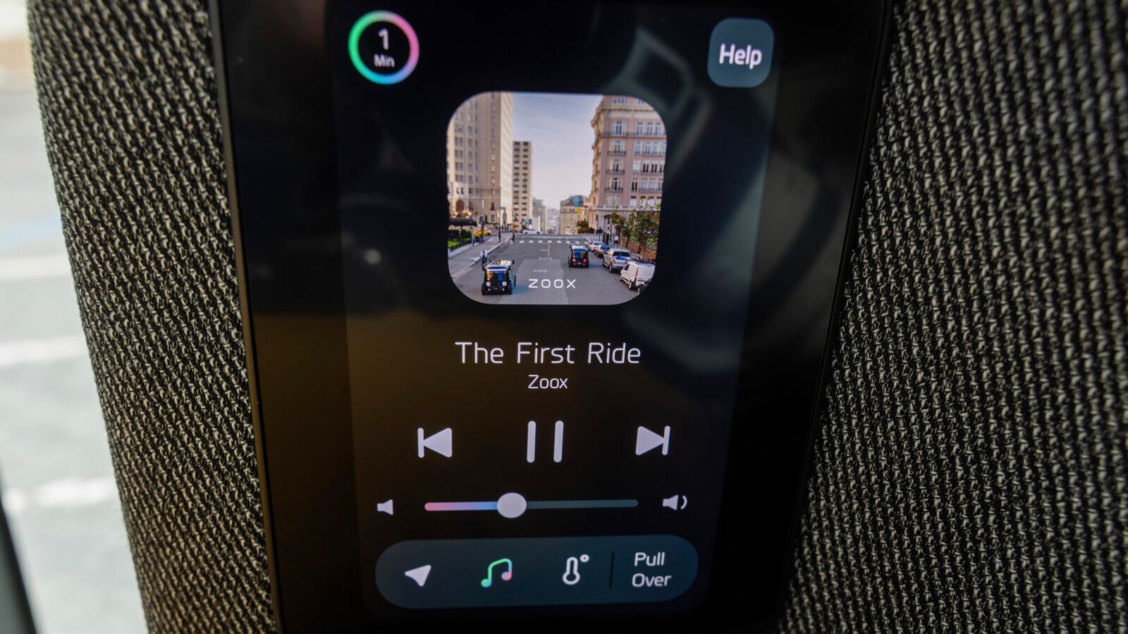 You can also set the music—a great perk for a lovely work commute, or to get the group singing along on a trip to your destination in Las Vegas. We opted for the soothing electronic sounds of the Zoox playlist.